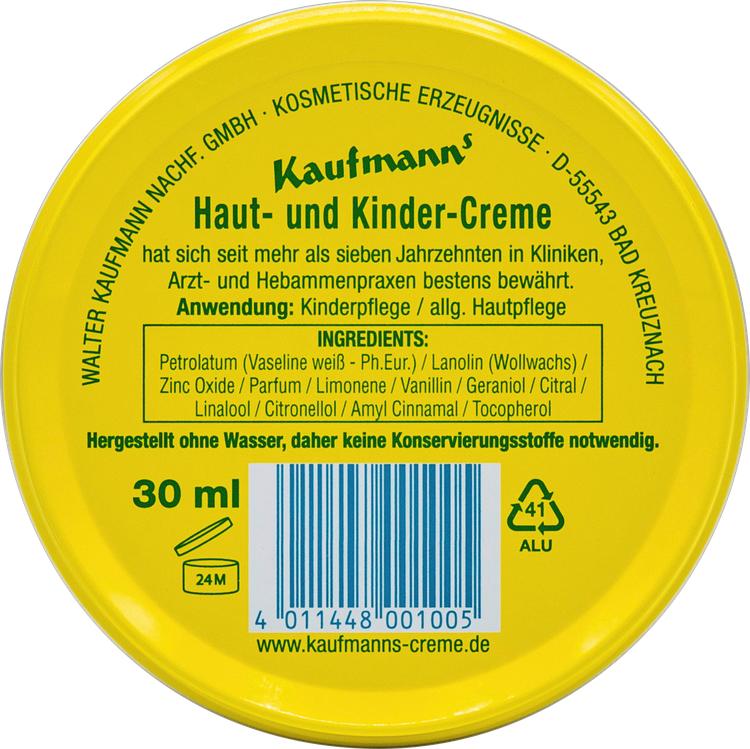 Kaufmanns hud- och barnkräm är en mycket effektiv vårdprodukt för den känsliga huden hos spädbarn och barn från 1 månads ålder. Denna mångsidiga kräm ger omedelbar lindring för torr och känslig hud. Tack vare den speciella, vattenfria formulan skyddas och vårdas huden intensivt, medan värdefulla ingredienser som E-vitamin och naturliga oljor ser till att huden känns smidig. Krämen är inte bara idealisk för hela kroppen, utan är också lämplig för att förebygga blöjor. Dess skyddande film skyddar huden från skadlig miljöpåverkan och stöder utvecklingen av mjuk, hälsosam hud. Kaufmanns hud- och barnkräm lämpar sig för alla hudtyper och rekommenderas ofta av läkare.
