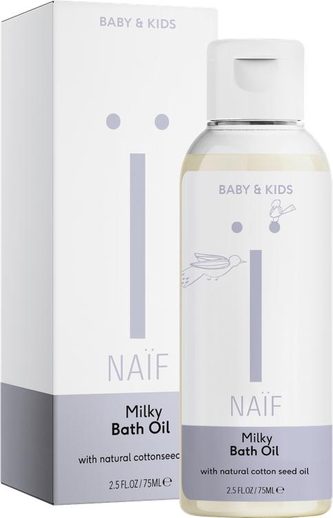 NAÏF Mild Bath Oil for Baby and Child är den perfekta lösningen för att varsamt rengöra och ta hand om känslig babyhud under badet. Med naturliga ingredienser som linfröolja, kamomill och bomullsfröolja återfuktar den huden och ger en behaglig badupplevelse. Den mjölkiga badoljan är lättlöslig, mjukar upp vattnet och lämnar ingen oönskad fet hinna på huden. Den innehåller inga kemiska skummedel eller skadliga ämnen som parabener, SLS/SLES eller mineraloljor. Istället förlitar sig NAÏF på hållbara förpackningar gjorda av sockerrör, som är 100% veganska och havsvänliga. Denna badolja är idealisk för alla hudtyper och ger skonsam vård för ditt barns känsliga hud.