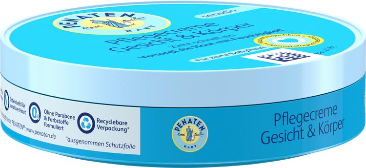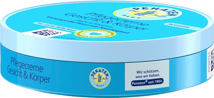 Penaten Baby Care Cream Face & Body är en fuktkräm speciellt utvecklad för nyfödda som ger optimal vård för känslig babyhud. Denna snabbabsorberande kräm är idealisk för daglig hudvård och ökar hudens fuktinnehåll. Den doft- och färgämnesfria formulan minimerar allergirisker och är idealisk för spädbarns behov. Den här vårdande krämen är en viktig del av varje barns första kit.