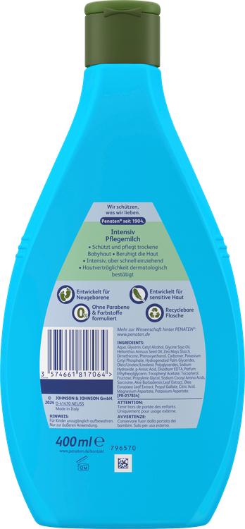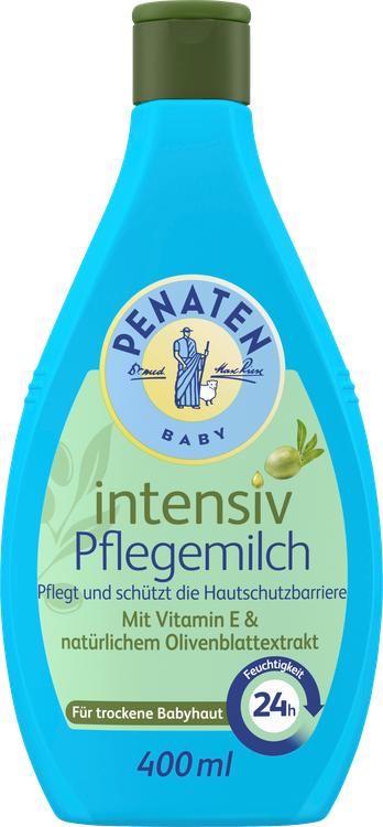 Penaten Baby Care Milk Intensive är den perfekta lösningen för den dagliga vården av känslig och torr babyhud. Denna milda vårdlotion har utvecklats speciellt för nyfödda och innehåller värdefulla ingredienser som olivbladsextrakt och vitamin E, som intensivt återfuktar och stöder hudbarriären. Den milda formulan absorberas snabbt och lämnar en behaglig känsla på huden utan att klibba. Den skyddar barnets känsliga hud från att torka ut och ser till att den förblir mjuk och smidig. Denna hudvänliga vårdmjölk är dermatologiskt testad och är den perfekta följeslagaren för ditt barns känsliga hud.