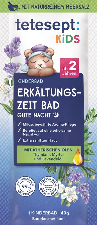 Tetesept badtillsats för barn Cold Time Good Night har utvecklats speciellt för små barn från 2 år och uppåt och erbjuder en lugnande time-out i badet. Under den kalla och våta årstiden ger detta badsalt en behaglig och avkopplande badupplevelse. Kombinationen av rent naturligt havssalt och en noggrant avvägd eterisk oljeblandning, bestående av timjan, myrten och lavendelolja, har en lugnande effekt och förbereder försiktigt barnen för en vilsam natt. Den milda formulan är särskilt snäll mot huden och hjälper dem att somna och somna kvar.
