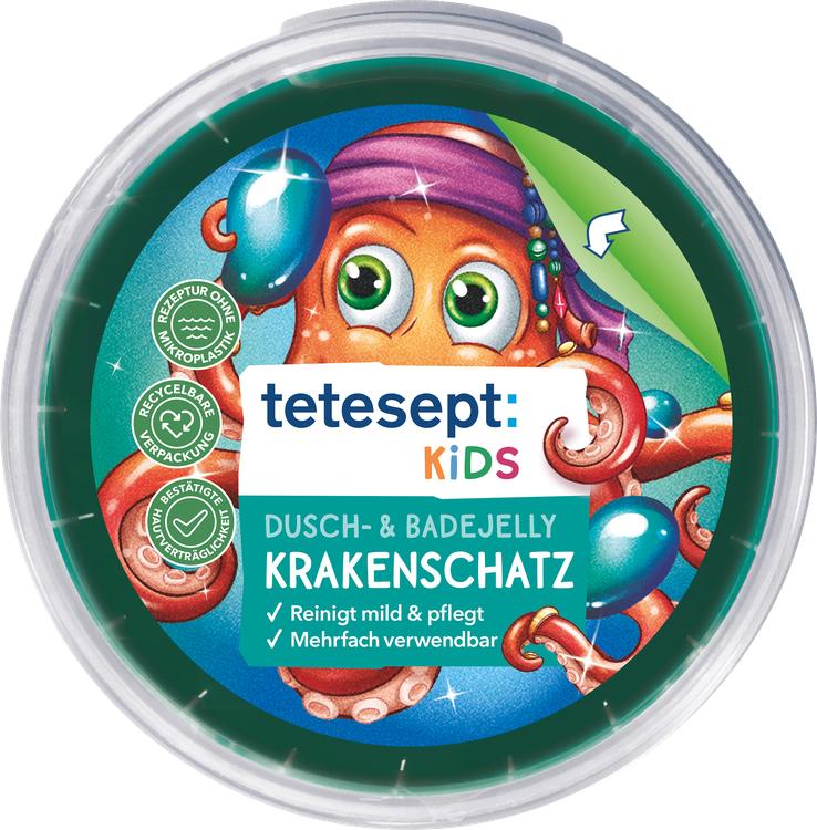 Upptäck en spännande upplevelse för de små med Tetesept Kids Shower & Bath Jelly Krakenschatz! Denna roliga tvättgelé gör inte bara den dagliga kroppsrengöringen roligare, utan ger också mild och skonsam hudvård. Med en hisnande glittereffekt förvandlar gelén bad och dusch till ett riktigt äventyrligt nöje. Den kan enkelt tas ur burken, fuktas och appliceras på kroppen. Efter användning kan gelén torkas och återanvändas för ytterligare applikationer. Den dermatologiskt bekräftade hudkompatibiliteten gör den idealisk för barnhud. Upplev oförglömliga stunder tillsammans med ditt barn i badet eller duschen!