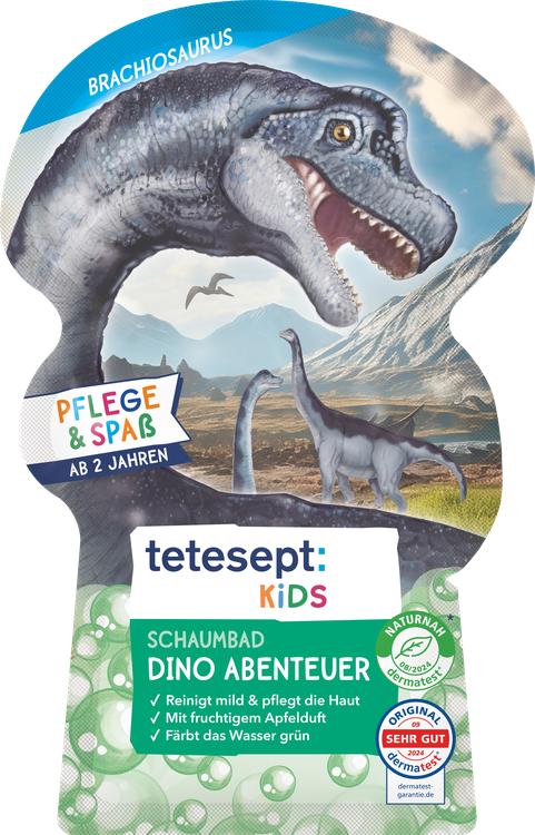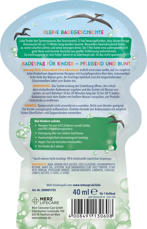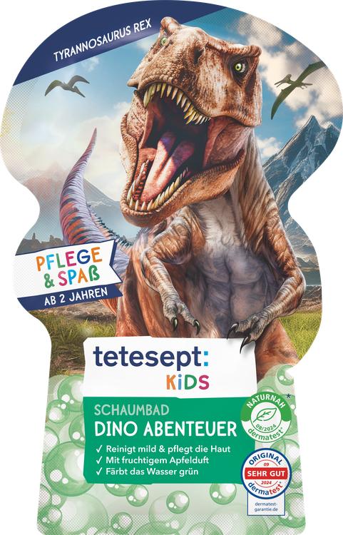 Upplev ett spännande badäventyr med Tetesept KIDS bubbelbad T-Rex World! Bubbelbadet är speciellt utvecklat för barns känsliga hud och har en mild formula som innehåller hudvårdande aloe vera. De spännande, dinosaurie-starka skummolnen skämmer bort sinnena och förvandlar badvattnet till en ljusgrön färg som stimulerar fantasin. Den fruktiga äppeldoften garanterar en glad badupplevelse, medan kombinationen av palm- och kokosolja rengör och vårdar huden varsamt. Den här produkten är perfekt för små äventyrare från 3 år och är inte bara rolig, utan också dermatologiskt godkänd för hudkompatibilitet.