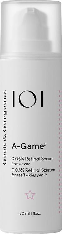 Upptäck A-Game 5 Serum från Geek&Gorgeous - ett högeffektivt, silkeslent serum med en medelhög koncentration av 0,05% Retinal. Detta innovativa serum har utvecklats speciellt för att minska uppkomsten av rynkor och mjuka upp pigmentfläckar. Genom att stimulera kollagenproduktionen och påskynda cellförnyelsen ger det en fastare och mer elastisk hud. Den silkeslena formulan ger din hud en jämn och slät hy och får den att se strålande fräsch ut.