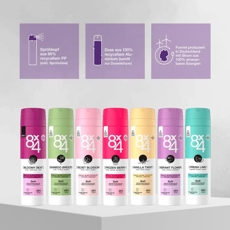 Upptäck 8x4 Women Bloomy Beat deodorantspray - en blommig orientalisk doftupplevelse som omsluter dig från topp till tå. Den uppfriskande noten av mandarin blandas harmoniskt med blommande jasmin för att skapa en sensuell elegans som lyfter och inspirerar ditt humör. Med ett tillförlitligt skydd i 48 timmar är du perfekt utrustad för att möta vardagens utmaningar med lätthet och fräschör. Den dermatologiskt testade hudkompatibiliteten garanterar en behaglig känsla på huden, medan den unika Fresh Mind Effect® ger dig en gnistrande känsla av lycka. En perfekt följeslagare för varje dag - spray med lycka, spray 8x4!