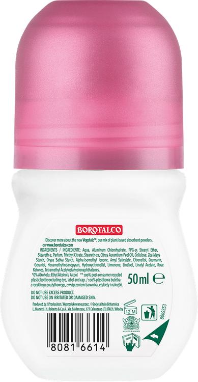 Borotalco Soft Flower roll-on deodorant kombinerar innovativ teknik med en delikat, blommig doft. Tack vare den unika Active Crystal Talc™-tekniken ger denna deodorant ett tillförlitligt skydd mot kroppslukt i upp till 48 timmar. Den alkoholfria formuleringen är särskilt skonsam mot huden och har testats dermatologiskt, så att du kan känna dig fräsch och bekväm hela dagen. Den praktiska roll-on-applikationen möjliggör riktad applicering när som helst, vilket gör den till den perfekta följeslagaren för daglig användning. Doften kombinerar blommiga noter och liljekonvalj med den subtila pulverformiga basen av Borotalco Original-doften och ger en behaglig, fräsch känsla.