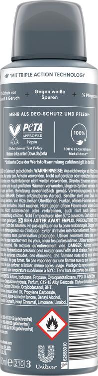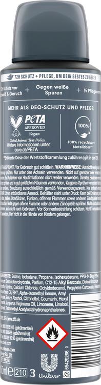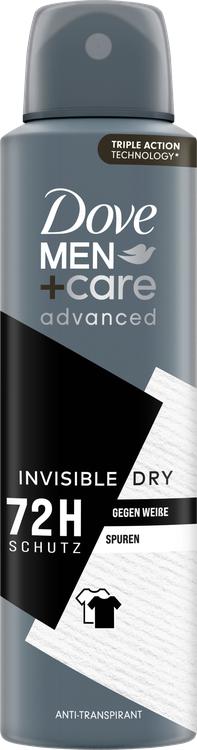 Dove Men+Care Antiperspirant Deodorant Spray Advanced Invisible Dry ger män ett effektivt skydd mot svett och kroppslukt i upp till 72 timmar. Tack vare den innovativa Triple Action Technology bekämpar den på ett tillförlitligt sätt obehagliga lukter samtidigt som huden känns mjuk. Formeln innehåller ¼ vårdkräm, som är speciellt utvecklad för känslig hud under armarna och förhindrar hudirritation. Dessutom lämnar sprayen inga synliga vita märken på kläderna, så att du kan klä dig bekymmersfritt hela tiden. Med en diskret maskulin doft skämmer deodoranten bort dig och ger dig en känsla av friskhet och säkerhet, oavsett situation. Dove Men+Care står för vårdprodukter som är skräddarsydda för behoven hos mäns hud och ser till att män känner sig bekväma i sin hud.