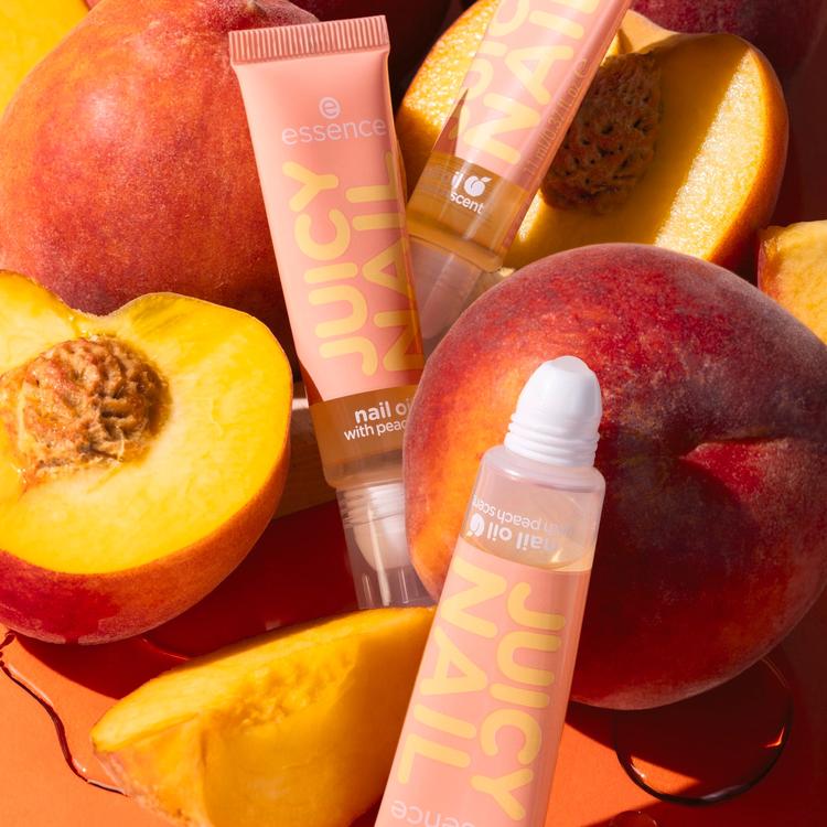 essence JUICY NAIL Nail Oil Keep On Rollin ger skonsam vård till naglar och nagelband samtidigt som den skämmer bort dem med en fruktig doft. Den praktiska roll-on-applikatorn möjliggör en enkel och målinriktad applicering, så att nageloljan kan glida lätt över nagelbanden utan att behöva tryckas på. Den snabbabsorberande formulan återfuktar naglarna och nagelbanden och ger dem en mjuk känsla. Med sin transparenta konsistens ger den en välvårdad glans och är idealisk för snabb vård däremellan, oavsett om du är hemma eller på språng. Förvandla varje applicering till en liten vårdande höjdpunkt och njut av känslan av vackra, friska naglar när du vill.