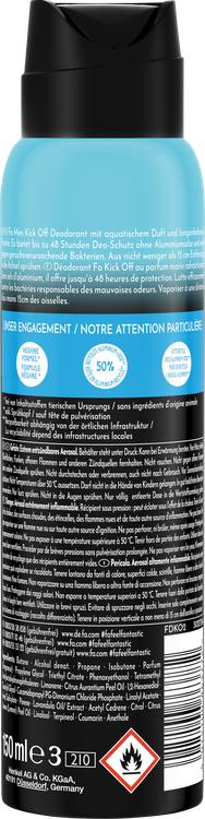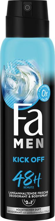 Upptäck FA Men Deodorant Spray Kick Off och låt dess uppfriskande, akvatiska doft följa med dig hela dagen. Denna speciella formula erbjuder inte bara ett aktivt och uppfriskande skydd, utan bekämpar också luktframkallande bakterier, vilket gör att du känner dig fräsch och självsäker i upp till 48 timmar. Deodorantsprayen är dermatologiskt testad, hudvänlig och innehåller inga aluminiumsalter. Den lämnar inte heller några fula rester på dina kläder, vilket gör den idealisk för daglig användning. Njut av känslan av långvarig friskhet och aktivera dina sinnen med varje spray!