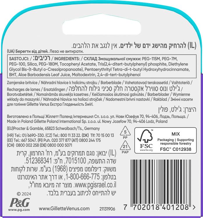 Upplev en revolutionerande rakning som anpassar sig perfekt till din kropps naturliga konturer med Gillette Venus Extra Smooth Swirl rakblad. Dessa högkvalitativa blad är utrustade med en innovativ FlexiBall, som säkerställer att varje kurva och hörn nås utan ansträngning. Det 5-bladiga rakhuvudet garanterar långvarig släthet, medan de speciella glidremsorna, berikade med vitamin E, skyddar din hud från irritation och säkerställer en bekväm rakningsupplevelse. Varje blad håller i upp till 30 dagar, så att du kan njuta av ett felfritt resultat och en len hudkänsla under lång tid. Alla ersättningsblad är kompatibla med de flesta Gillette Venus-handstycken (utom Simply Venus och Venus för intim användning). Upptäck hela utbudet av Gillette Venus-produkter för optimal hudvård och skäm bort din hud med den perfekta rakningen.