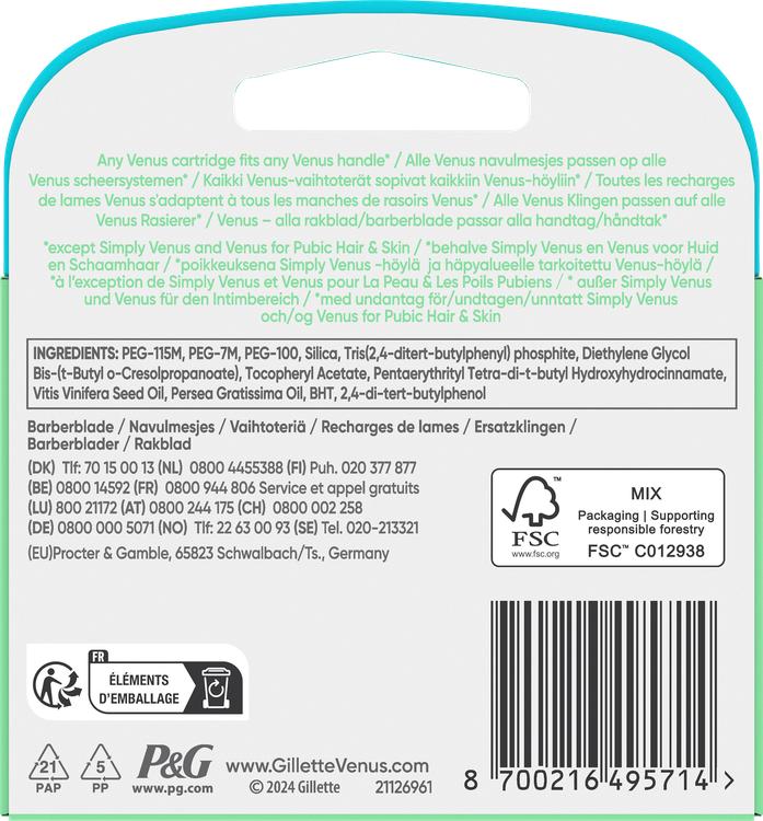 Gillette Venus Extra Smooth rakblad ger dig en sköna rakning för en slät och smidig hud. Med fem precisionsslipade blad säkerställer de en långvarig rakning som är enkel även på svåra områden på kroppen. Den innovativa SkinCushion-glidremsan, berikad med E-vitamin, skyddar huden mot irritation och gör rakningen till en behagligt skonsam upplevelse. Bladen är kompatibla med alla Venus-handstycken, med undantag för Simply Venus och Venus-modellerna för intima områden. Dessutom ser duschhållaren till att din rakhyvel förblir ren och torr mellan användningarna. Skäm bort din hud och upplev kvaliteten på Gillette Venus-produkterna, speciellt utvecklade för din kropps behov.