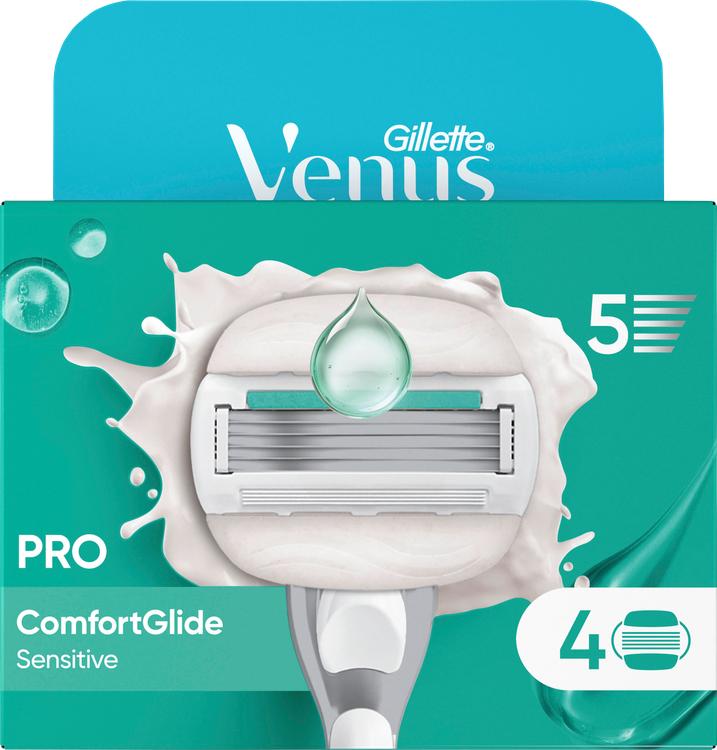 Upptäck en skonsam och effektiv rakning med Gillette Venus Pro ComfortGlide Sensitive rakblad. Dessa blad är speciellt utvecklade för torr hud och ger en makalös rakningsupplevelse. Med fem vassa blad och en innovativ glidremsa som innehåller en touch av aloe vera, glider de enkelt över huden för synligt släta och mjuka resultat i ett enda drag. De flexibla gelkuddarna anpassar sig perfekt till kroppens konturer och skyddar huden från irritation. Den dermatologiskt testade designen garanterar en bekymmersfri släthet som varar. Dessa rakblad är perfekta för daglig hudvård och är det perfekta valet för alla som värdesätter komfort och en smidig rakning.