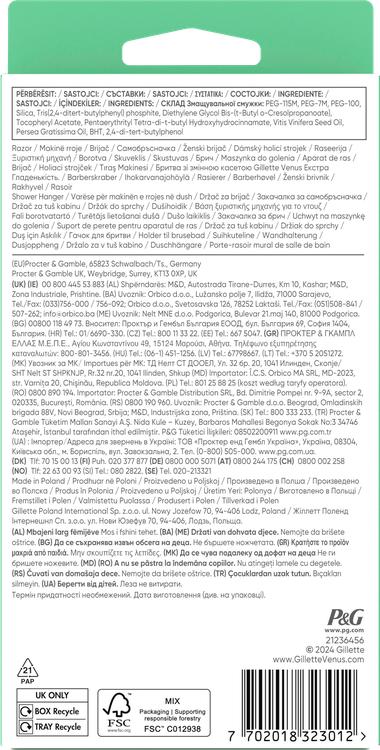 Upplev en smidig rakning med Gillette Venus Extra Smooth rakhyvel. Utrustad med fem högkvalitativa blad förvandlar den den dagliga rakningsrutinen till ett enkelt nöje och säkerställer en jämn och nära rakning i ett enda drag. Den integrerade SkinCushion-glidremsan skyddar din hud från irritation och ger en bekväm rakningsupplevelse. Tack vare det ergonomiska, halkfria handstycket ligger rakapparaten säkert i handen och garanterar exakt användning. Den praktiska duschhållaren ser till att rakapparaten förblir ren och torr mellan användningarna. Med långlivade blad som håller i upp till 30 dagar är Gillette Venus Extra Smooth rakhyvel din perfekta följeslagare för ett välvårdat utseende och en fräsch känsla som varar hela dagen. Upptäck Gillette Venus-sortimentet och skäm bort din hud med en mängd olika vårdalternativ som är utformade speciellt för din kropp och ditt hår.