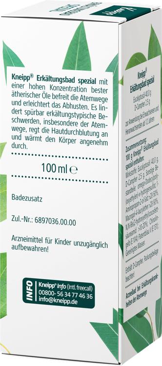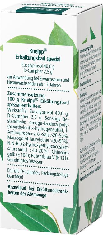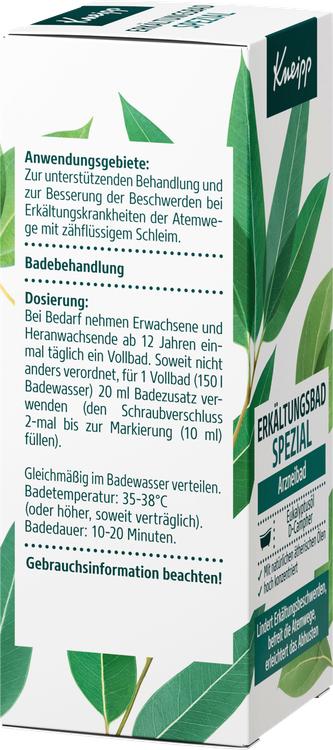 Kneipp® Cold Bath Special är ett växtbaserat läkemedel som används specifikt för att lindra förkylningssymtom i luftvägarna. Det innehåller en hög koncentration av värdefulla eteriska oljor, bland annat eukalyptusolja och D-kamfer, som är kända för att rensa luftvägarna och göra det lättare att hosta. Den behagliga värmen som avges under badet värmer inte bara kroppen utan främjar också blodcirkulationen i huden. Denna produkt är idealisk för stödjande behandling av förkylningar hos vuxna och ungdomar från 12 år och uppåt.