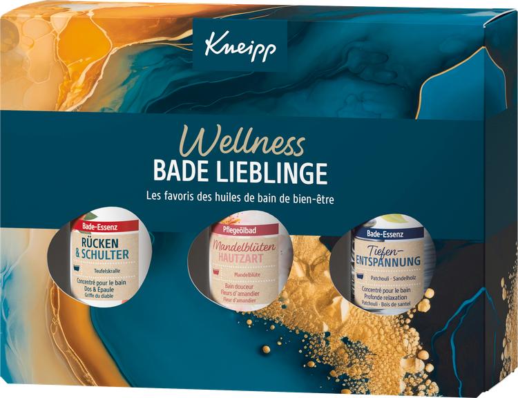 Kneipp Wellness Bath Darlings presentförpackning kombinerar tre utsökta badoljor som ger en holistisk känsla av välbefinnande. Varje olja är berikad med värdefulla eteriska oljor och erbjuder den perfekta lösningen för olika humör och behov. Oavsett om du vill slappna av efter en lång dag, ta hand om din hud eller helt enkelt vill få in lite välbefinnande i ditt liv, så har det här setet rätt produkt för varje ögonblick. De badoljor som ingår är: Bath Essence Back Wellbeing, som är speciellt formulerad för att lindra spänningar; Bath Essence Deep Relaxation, som hjälper dig att lämna vardagens stress bakom dig; och Nourishing Oil Bath Almond Blossom Skin Delicate, som skämmer bort och återfuktar din hud. Detta presentkit är perfekt som en liten present eller som en speciell julklapp.