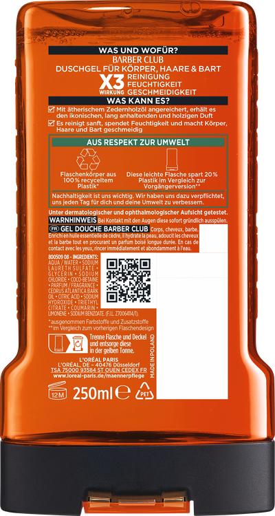 L'Oréal Men Expert Barber Club Shower Gel är den perfekta vårdprodukten för moderna män. Denna mångsidiga 3-i-1-produkt rengör inte bara kroppen, utan även hår och skägg skonsamt och noggrant. Den speciella formulan med eterisk olja från cederträ ger en uppfriskande fräschör och en överdådig doft som gör varje duschupplevelse till ett riktigt feelgood-ögonblick. Duschgelens återfuktande egenskaper garanterar en behaglig känsla på huden samtidigt som håret får en strålande vacker lyster. Duschgelen är utvecklad för män från 25 år och är lämplig för alla hudtyper och erbjuder en mild och skonsam rengöring. Med sin rika konsistens säkerställer den en långvarig duschupplevelse som varar i flera veckor.