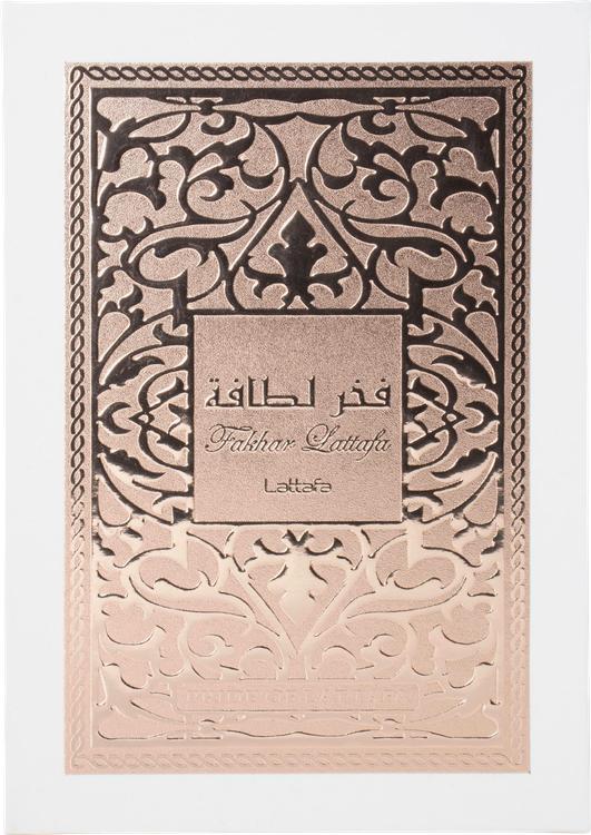 Lattafa Fakhar Rose Eau de Parfum är en lyxig doft som förför sinnena och förflyttar bäraren till en värld av blommig och fruktig elegans. Toppnoten öppnar med en uppfriskande bukett av livlig ros, söta hallon och syrlig citron, som omedelbart sprider en positiv stämning. Delikata nyanser av jasmin och pion utvecklas i hjärtnoten, som omsluts av en antydan till mysk och ger doften ett romantiskt djup. Doftupplevelsen avrundas med en varm bas av bärnsten, sandelträ och vanilj, som lämnar ett långvarigt och sensuellt intryck. Den eleganta flaskan återspeglar parfymens feminina accenter och gör den till den perfekta presenten för speciella tillfällen.