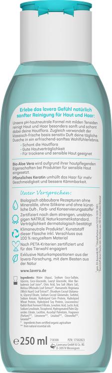 Upplev särskilt skonsam rengöring för hud och hår med Lavera Basis Sensitive Shower Gel 2in1. Den pH-neutrala, veganska formeln med milda ytaktiva ämnen säkerställer att din hudflora skyddas. Idealisk för torr och känslig hud, den klassiska, fräscha Basis Sensitiv-doften förvandlar din dagliga dusch till en uppfriskande, mild feel-good-upplevelse. Den värdefulla ekologiska aloe vera är känd för sina hudvårdande egenskaper och stöder vården av känslig hud. Växtkeratin täcker också ditt hår, vilket gör det mjukare och lättare att kamma. Formulan är biologiskt nedbrytbar och fri från mineraloljor, silikoner och artificiella dofter, färger och konserveringsmedel. Flaskan är tillverkad av 100% återvunnet material och produkterna är certifierade enligt den strikta naturkosmetikstandarden NATRUE och PETA-kriterierna, vilket understryker vårt engagemang för djurens välbefinnande.