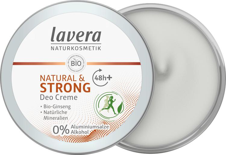 Upptäck Lavera Natural & Strong Deodorant Cream, som ger dig 48 timmars tillförlitligt skydd - även under fysisk aktivitet. Denna innovativa deodorantkräm kombinerar naturens kraft med en noggrant utvecklad formel som innehåller organisk ginseng och naturliga mineraler. Den minskar tillväxten av luktframkallande bakterier och förhindrar effektivt utvecklingen av svettlukt - utan några aluminiumsalter. Den alkoholfria formeln med organiskt sheasmör säkerställer att krämen inte svider efter rakning och ger din stressade underarmshud den vård den behöver. Lavera är också engagerad i att skydda miljön genom att undvika mikroplast och använda hållbara förpackningar. Burken är tillverkad av 100% återvunnet material och är därför en miljövänlig följeslagare. Du kan lita på certifierad naturkosmetik som har testats dermatologiskt och inte innehåller några konstgjorda dofter eller konserveringsmedel.