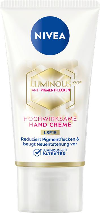 Upptäck Nivea LUMINOUS630 handkräm, en banbrytande innovation i kampen mot pigmentfläckar. Efter mer än ett decennium av intensiv forskning och analys av mer än 50 000 ingredienser har Nivea utvecklat en unik aktiv ingrediens som effektivt minskar befintliga pigmentfläckar samtidigt som den förhindrar att nya bildas. Den icke-feta formulan är lämplig för daglig användning och visar synliga resultat efter bara 4 veckor. Med solskyddsfaktor 15 erbjuder handkrämen ytterligare skydd mot ljusinducerat hudåldrande. Berikad med hyaluronsyra ger den huden intensiv fukt i 24 timmar, vilket ger jämnare och yngre händer. Hudkompatibiliteten har bekräftats dermatologiskt, så du kan använda handkrämen utan att tveka.