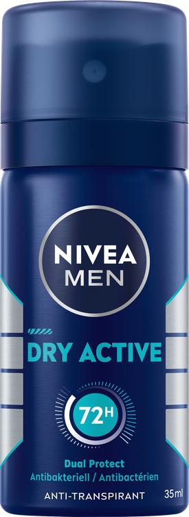 Nivea Men Deo Spray Dry Active ger dig tillförlitligt skydd mot svett och obehagliga lukter i upp till 72 timmar. Tack vare den innovativa Dual Protect-formeln, som kombinerar två antibakteriella aktiva ingredienser, får denna antiperspirant din hud att kännas behaglig och torr. Den dermatologiskt testade formulan innehåller inte någon etylalkohol och garanterar därför maximal hudkompatibilitet. I den praktiska resestorleken är denna deodorantspray den perfekta följeslagaren på språng för att säkerställa ett friskt och bekvämt utseende hela tiden. Lita på mer än 140 års erfarenhet från Nivea, ett av världens mest betrodda varumärken inom hudvård.