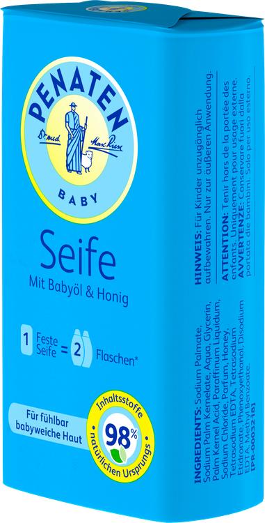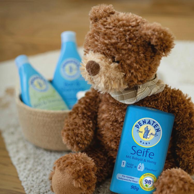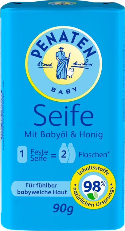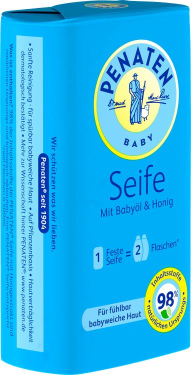 Penaten tvål är speciellt utvecklad för känslig babyhud och ger en skonsam rengöring som är anpassad till nyföddas behov. Med en hög andel av 98% ingredienser av naturligt ursprung innehåller den närande babyolja och honung, som säkerställer märkbart mjuk hud. Denna dermatologiskt testade tvål är idealisk för känslig hud och skyddar mot uttorkning. Tester har visat att tvålen avlägsnar upp till 99% av smuts och bakterier, vilket gör den till ett perfekt val för daglig vård. Kombinationen av naturliga ingredienser och dermatologisk kompatibilitet gör Penaten tvål till en oumbärlig följeslagare för att försiktigt rengöra känslig babyhud.