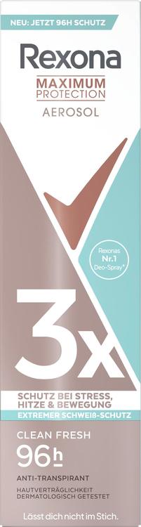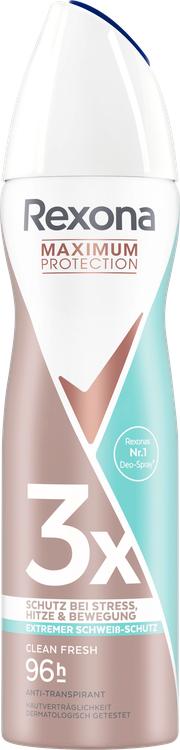 Rexona Maximum Protection Antiperspirant Deodorant Spray Clean Fresh erbjuder tillförlitligt och effektivt skydd mot svett och kroppslukt i upp till 96 timmar. Oavsett om du är under stress, i värmen eller under träning - denna speciella formel garanterar trippelskydd, vilket ger dig ett självsäkert utseende och långvarig friskhet. Den fräscha doften av deodoranten säkerställer att du mår bra hela dagen. Den är enkel att använda: skaka sprayen, håll den ca 15 cm från huden och spraya den i korta stötar på armhålorna. Antiperspiranten innehåller inga alkoholer och är därför lämplig även för känslig hud. Metallburken är dessutom återvinningsbar i det oändliga, vilket gör den miljövänlig. Rexona har gjort det till sitt uppdrag att utveckla innovativa produkter som bekämpar utmaningarna med svettning - för varje tillfälle, oavsett om det gäller sport, vardagsliv eller speciella evenemang.