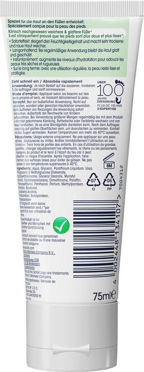 Scholl Rich Foot and Nail Cream är den perfekta lösningen för mycket torr hud. Med en hög andel av 5% urea och ett speciellt vitaminkomplex främjar den intensiv vård av fötterna. Krämen är kliniskt bekräftad och ger silkesmjuka fötter och ökar omedelbart hudens fuktinnehåll. Vid regelbunden användning skyddar och slätar den ut huden på lång sikt så att du kan njuta av en märkbart förbättrad hudstruktur. Ge dina fötter den vård de förtjänar och upplev skillnaden.