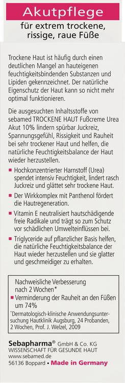 Sebamed fotkräm med 10% urea är speciellt utvecklad för intensiv vård av torr hud. Högkoncentrerad urea ger inte bara intensiv fukt, utan lindrar också märkbart klåda och får huden att kännas behaglig. Det aktiva komplexet med panthenol stöder naturlig hudförnyelse och främjar utjämning av mycket torra områden. Vitamin E skyddar också huden från skadliga fria radikaler och stöder hudens försvar mot miljöpåverkan. Vegetabiliska triglycerider hjälper till att återställa hudens naturliga fuktbalans, vilket gör den mjukare och smidigare. Denna fotkräm är också särskilt lämplig för vård av speciella hudtillstånd som diabetes, neurodermatit och psoriasis.