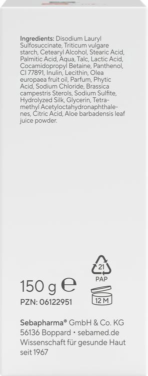 Den tvålfria tvätten med olivolja från sebamed erbjuder en särskilt mild rengöring, speciellt utvecklad för känslig och krävande hud. Med ett noggrant balanserat vårdkomplex av högkvalitativ olivolja, silkesprotein och fytosteroler säkerställer den noggrann rengöring och en behaglig känsla av friskhet. De värdefulla ingredienserna som aloe vera stödjer hudens fuktbalans och hjälper till att lugna den. pH-värdet på 5,5 främjar hudens naturliga skyddsfunktioner och skyddar den mot skadlig yttre påverkan. Denna tvätt är idealisk för daglig användning, särskilt för känslig hud eller hudåkommor, och erbjuder ett skonsamt alternativ utan irritation eller uttorkning.
