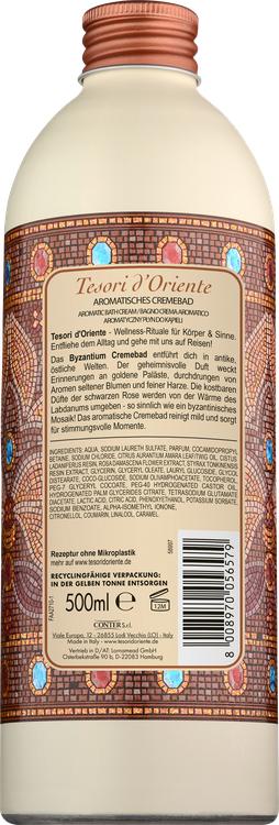 Fly från vardagen och njut av en sensuell badupplevelse med krämbadet Byzantium från Tesori d'Oriente. Inspirerad av de majestätiska palatsen i den antika staden Bysans, transporterar denna lyxiga badtillsats dig till en värld full av himmelska dofter av sällsynta blommor och värdefulla hartser. Den harmoniska doftkombinationen av svart ros och labdanum ger en mild rengöring och gör att huden känns mjuk och smidig. Förvandla ditt badrum till en oas av välbefinnande som är perfekt både för dig själv och som present till dina nära och kära. Med sitt eleganta utseende och underbara doft är detta krämbad en riktig höjdpunkt för varje badplats.