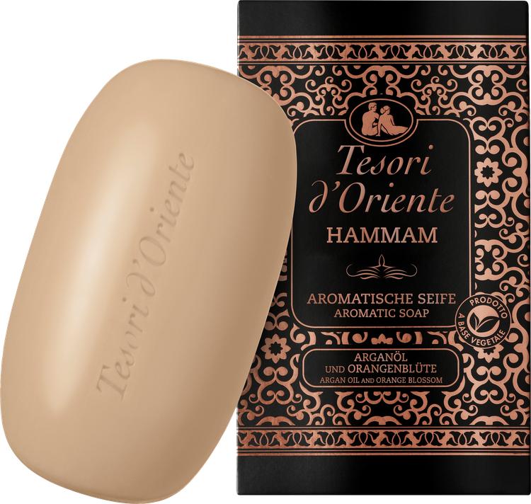 Upptäck en unik rengöringsupplevelse inspirerad av traditionella turkiska hälsoritualer med Tesori d'Oriente Hammam tvål, berikad med lyxig arganolja och en förförisk doft av apelsinblomma. Denna aromatiska tvål skämmer bort dina sinnen så snart du tvättar händerna och skapar en avkopplande atmosfär. Kombinationen av närande ämnen och kryddiga noter säkerställer att din hud inte bara rengörs utan också lämnas underbart mjuk och silkeslen. Denna tvål är lämplig för händer, ansikte och hela kroppen och för med sig hamamens magi direkt in i ditt badrum. Njut av den långvariga doften och den milda vården som skämmer bort din hud.
