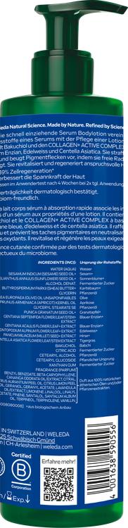 Weleda Revitalizing Serum Body Lotion är en innovativ kombination av effektiviteten hos ett serum och den intensiva vården hos en body lotion. Denna snabbabsorberande formula har utvecklats speciellt för krävande hud och innehåller värdefulla ingredienser som bakuchiol och COLLAGEN+ ACTIVE COMPLEX, som består av blå gentiana, edelweiss och centella asiatica. Denna högkvalitativa lotion gör huden fastare, förbättrar elasticiteten och stöder cellförnyelsen med imponerande 39%. Den har också en antioxidant effekt, fångar upp fria radikaler och förebygger effektivt pigmentfläckar. Upplev en revitaliserad och regenererad hud som känns smidig och fast.